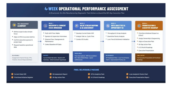 Our engagements are grounded in real production data, direct operator engagement, and executable improvement plans — not theoretical models or generic playbooks. Every recommendation we make is tied to a measurable financial outcome your leadership team can own and defend.